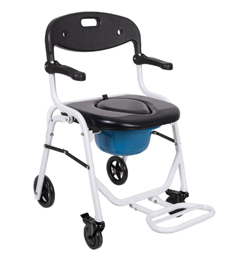 Dayanıklı metal gövdeye sahip olan bu komotlu banyo sandalyesi, dört tekerlekli yapısı ile rahatça hareket ettirilebilir. Alt kısmında bulunan çıkarılabilir hazne sayesinde temizlik işlemi oldukça kolaydır.