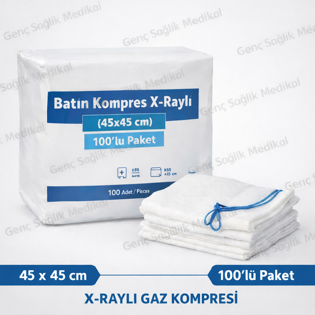 ÇOK AL AZ ÖDE...Batın kompres, ameliyat ve cerrahi işlemlerde kullanılan, yüksek emiciliğe sahip steril gazlı bez ürünüdür. X-rayli yapısı sayesinde ameliyat sırasında içeride kalma riskine karşı radyolojik olarak tespit edilebilir. 45x45 cm geniş ölçüsü ile özellikle büyük cerrahi alanlarda kullanım için idealdir.