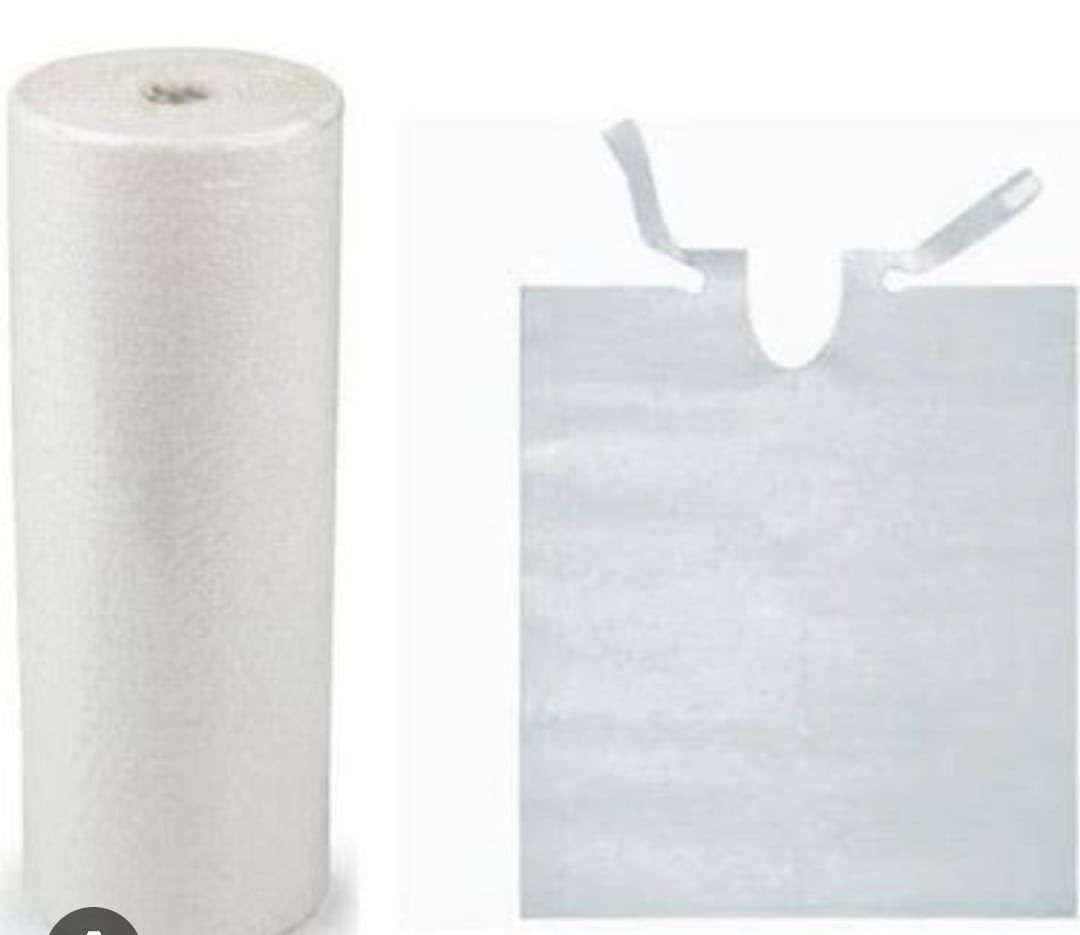 -Dişçi hasta önlüğü Kullanım alanları Diş hekimleri, ; Kuaförler, ; Güzellik merkezleri, ; Hasta bakım işleri gibi tüm alanlarda kullanılabilir ; Özellikleri Üst yüzeyi yırtılmaz kumaş kağıt kaplama ; Alt tarafı suyu ve nemi geçirmeyen lamine kaplama ; Boğaz kısmı kopartılabilir ve boyna uyum sağlar ; hastalıkları gibi önlemek için kullan at şeklindedir. ; 80 lik rulo halinde satılmaktadır.
