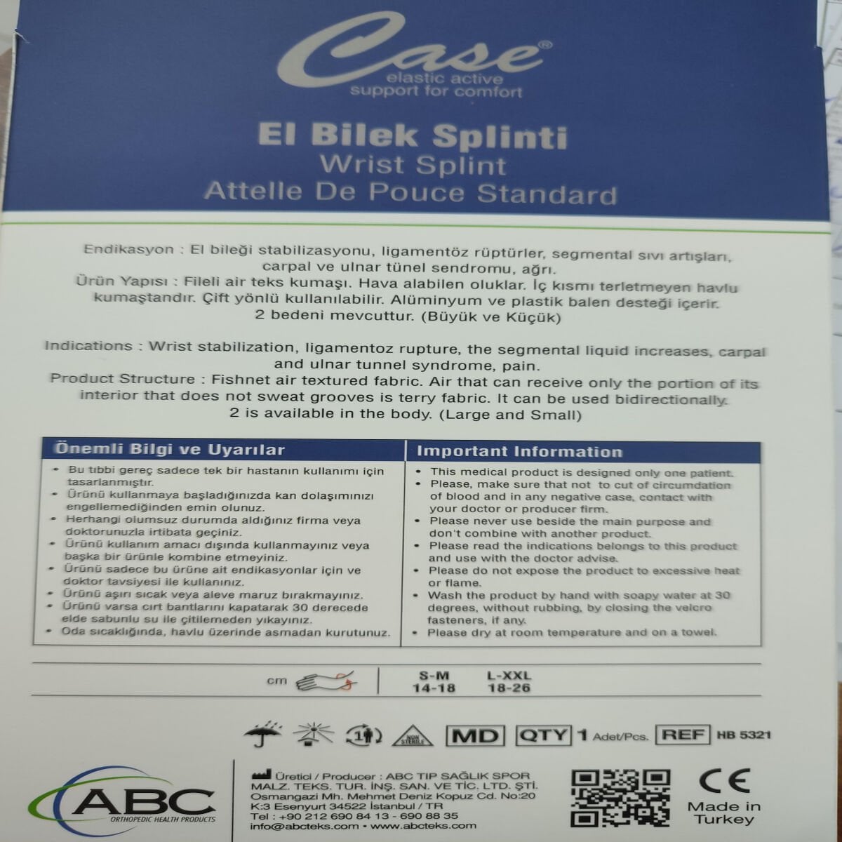 El bileğini sabit tutarak hareketi sınırlar ve iyileşme sürecini destekler. Elastik ve nefes alabilen kumaştan üretilir. İç kısmındaki metal destek (balen) sayesinde bilek doğru pozisyonda tutulur. Cırt bantlı yapısı ile kolayca ayarlanabilir ve her iki elde kullanılabilir