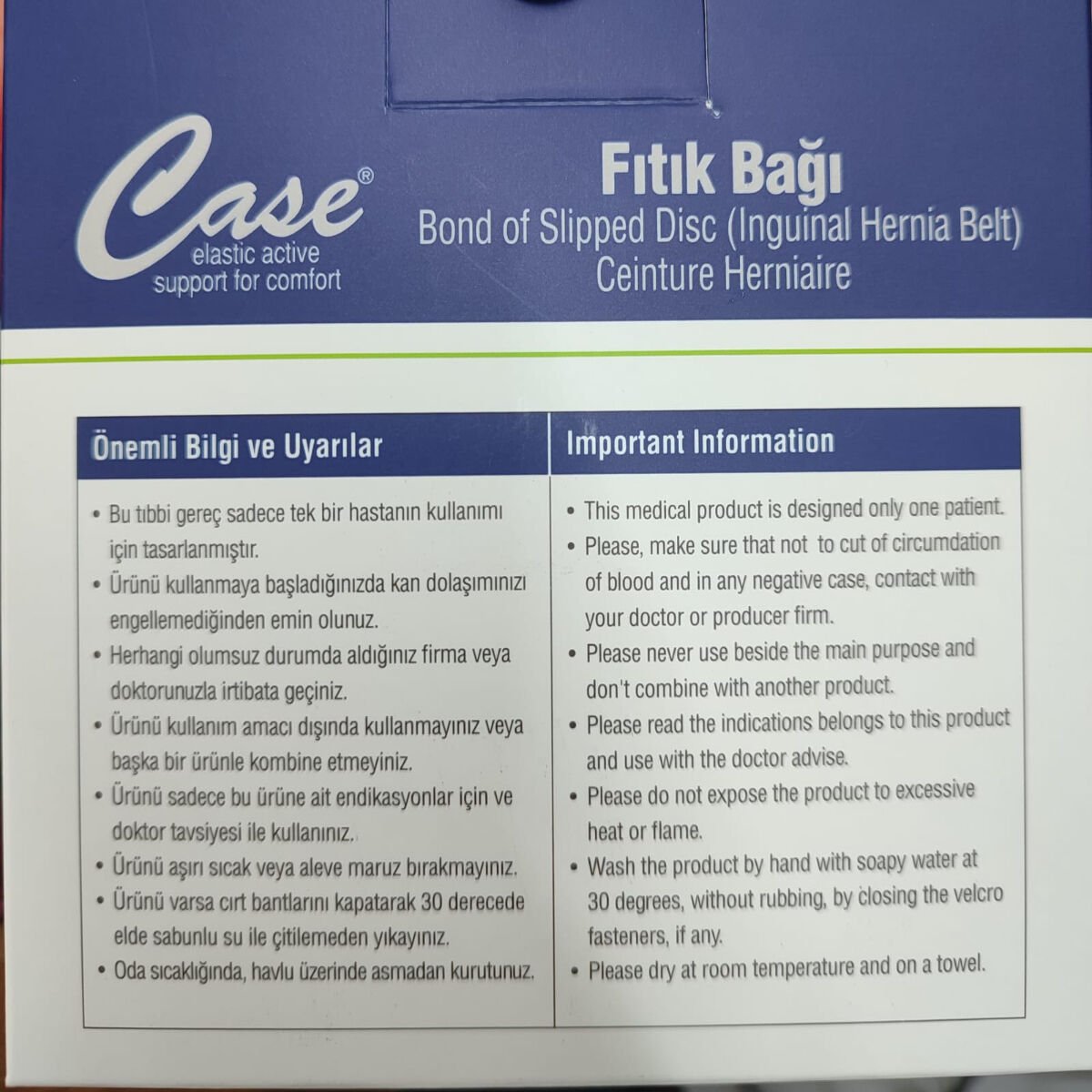 Fıtık vakalarında, ameliyattan önce ve sonra kullanılır. Ameliyattan önce fıtığın büyümesini, ameliyattan sonra dikişin patlamasını önler.