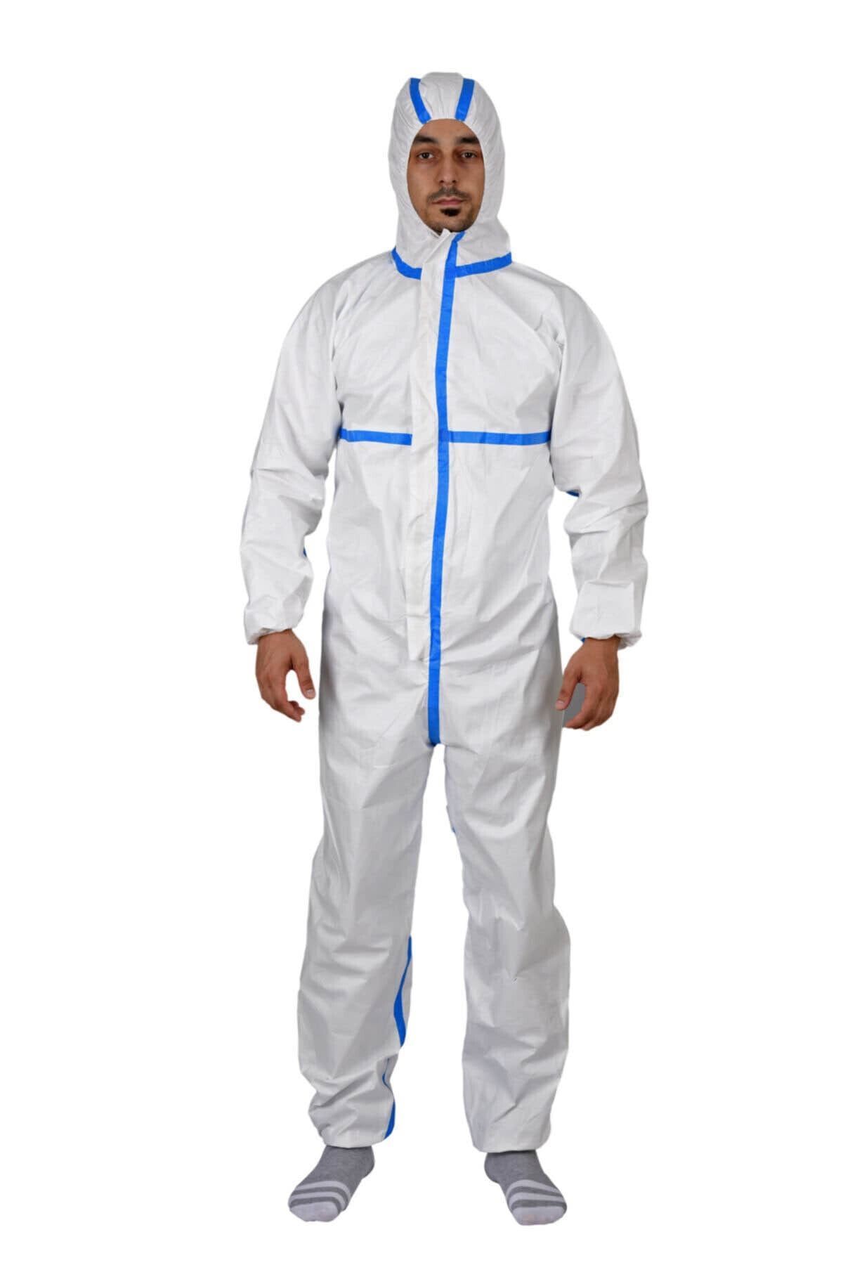 -Lamineli Medikal Tek Kullanımlık Tulum 55 Gram .Ürün Özellikleri: 56gr/m2 Lamineli Kumaştan üretilmiş kapüşon kenarı,beli,paçası ve kol ağızı lastikli, önü rahat giyip çıkarmak için 78 cm açılır fermuarlı, fermuar başlığı kilitli olup kendiliğinden açılmaz. Fermuar üzeri patlıdır ve çift taraflı 12 mm bant pat üzerinde mevcuttur. Bu ürün terlemeyi engelleyici (antiperspirant) ve nefes alabilen (breathable) özelliğe sahip, anti bakteriyel (antibacterial) olmasının dışında anti allerjiktir (anti allergic) de. Kumaş Özellikleri Su İtici Su geçirmez,partikül geçirmez,bakteri oluşturmaz,hafif ve yumuşaktır.İstediğiniz her alanda kullanabilirsiniz. Genelde ilaçlama ve boya tulumu olarak kullanılmaktadır.