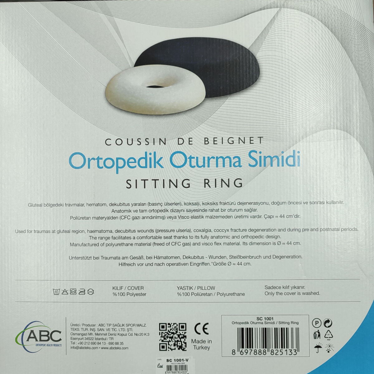 Oturma Simidi, koksiks travmalarında, hematom ve dekübitusda rahatlama sunmak amacıyla tasarlanmıştır. Özel tasarımlı poliüretan materyalden yapılmıştır. Fermuarlı kılıfı yıkanabilmesini mümkün kılar.