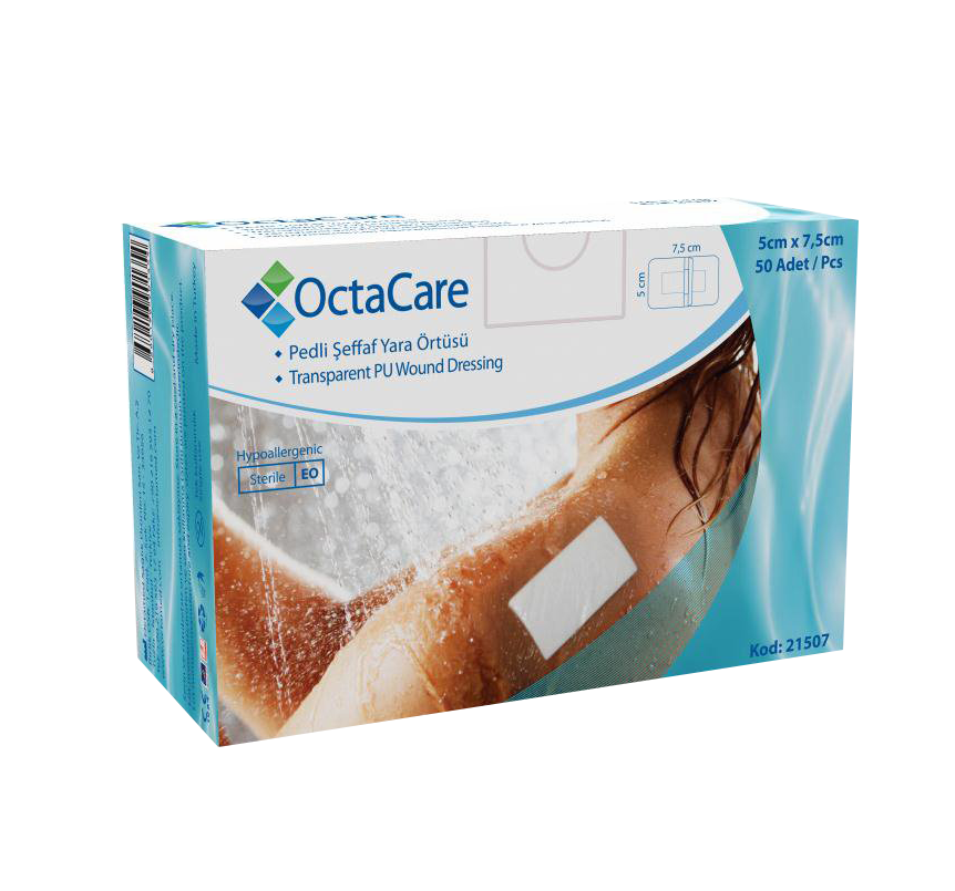 OctaCare Şeffaf Yara Örtüsü, şeffaf Poliüretan malzemeden üretilmiştir. Şeffaf yapısı sayede uygulanan bölgenin sürekli gözlemlenebilir olmasını sağlar. Esnek yapısı sayesinde vücut kıvrımlarına uyum sağlar. Ameliyat sonrasında dikişli bölgelerin korunmasında ve hastanın kendi kendine yapabileceği pansuman değişimlerinde kullanılabilir. Yaranın su ile temasını önlediğinden tedavi süresince duş alabilme rahatlığı sağlar.
