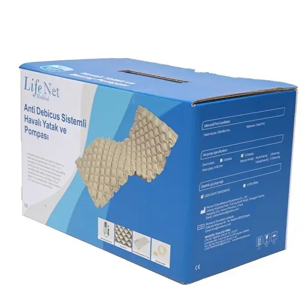 Life Net Medikal Havalı Hasta Yatağı (Baklava Dilimli & Ayarlanabilir Motorlu), uzun süre yatağa bağımlı hastalarda oluşabilecek bası yaralarını (dekübit) önlemeye yardımcı olmak amacıyla tasarlanmış medikal bir destek ürünüdür.
