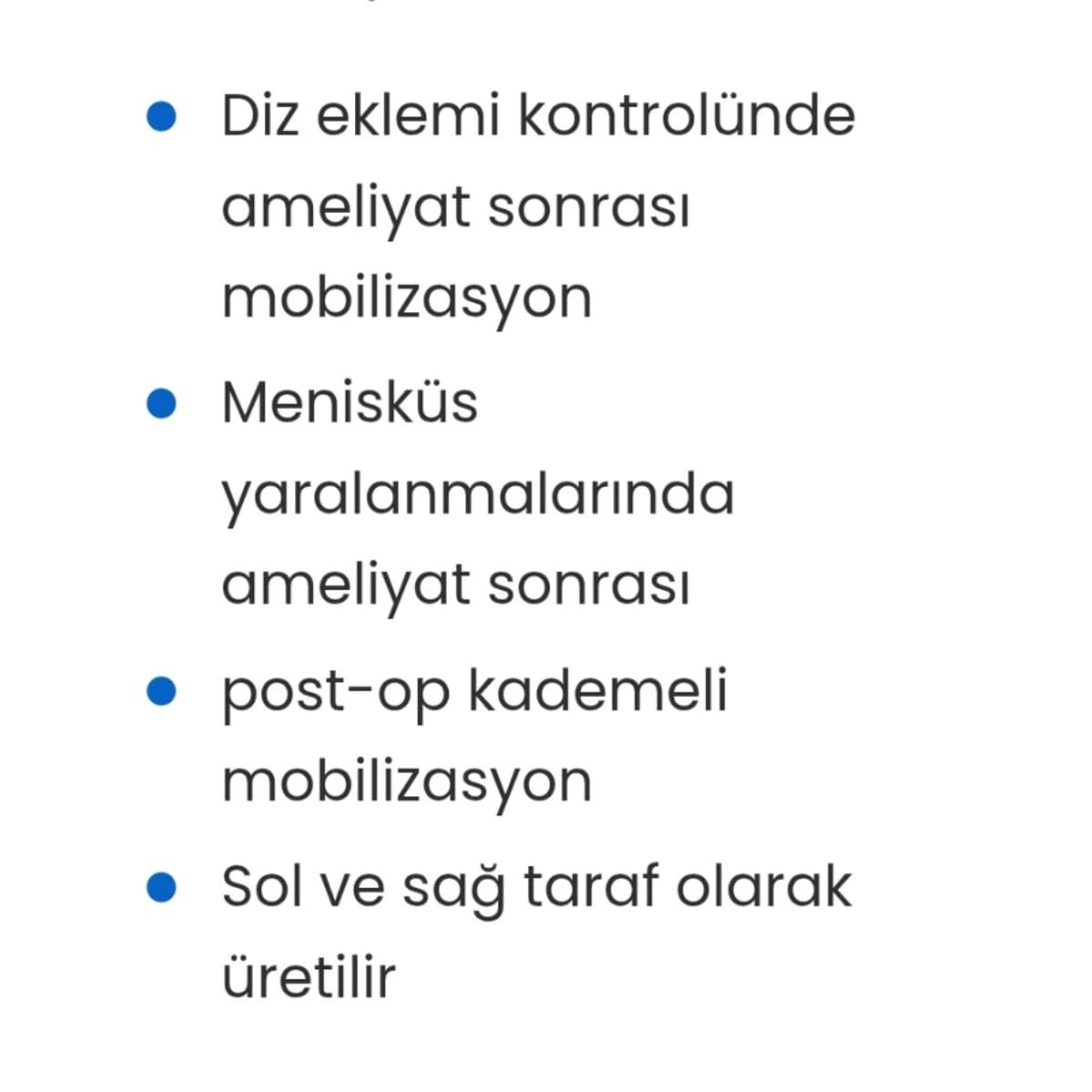Kollateral bağ yaralanmalarında, Artroz gibi romatizmal durumda, Genu rekurvatumda, Kollateral bağ operasyonlarında Post-op dönemde Total implant ameliyatlarında, Felç, Diz kontraktürleri.